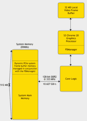Архитектура ядра, унаследовавшая базовые наработки от предыдущего поколения GammaChrome, наряду с полноценной поддержкой DirectX 9.0 обогатилась рядом современных технологических доработок. Среди них, в первую очередь, "нативная" поддержка шины PCI Express в любых её версиях – от PCI Express 1x до 16x, что позволяет использовать чипы серии S3 Graphics Chrome S20 в видеокартах для широкого спектра приложений.